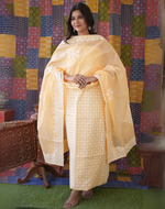Rajasthani Unstitched Appliqué Suit made from pure cotton, this suit showcases exquisite handwork. The top features intricate appliqué designs, while the organdy dupatta adds an elegant touch. Pair it with the comfortable cotton bottom for a complete ensemble. Available in a range of attractive pastel colors