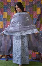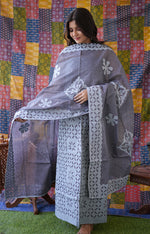 Rajasthani Unstitched Appliqué Suit made from pure cotton, this suit showcases exquisite handwork. The top features intricate applique designs, while the organdy dupatta adds an elegant touch. Pair it with the comfortable cotton bottom for a complete ensemble. Available in a range of attractive pastel colors.