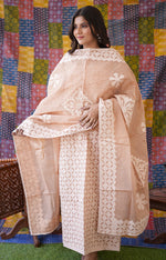 Rajasthani Unstitched Appliqué Suit made from pure cotton, this suit showcases exquisite handwork. The top features intricate appliqué designs, while the organdy dupatta adds an elegant touch. Pair it with the comfortable cotton bottom for a complete ensemble. Available in a range of attractive pastel colors