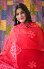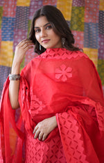 Rajasthani Unstitched Appliqué Suit made from pure cotton, this suit showcases exquisite handwork. The top features intricate appliqué designs, while the organdy dupatta adds an elegant touch. Pair it with the comfortable cotton bottom for a complete ensemble. Available in a range of attractive pastel colors
