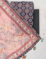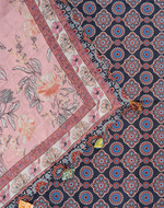 This stylish fusion set beautifully blends traditional Sanganeri and Ajrakh craftsmanship. The pure cotton top features delicate Sanganeri prints, complemented by a striking Ajrakh border for a rich ethnic appeal. Paired with a soft cotton dupatta enhanced with handmade tassels and Ajrakh patchwork, this ensemble brings a contemporary twist to timeless textiles. The look is completed with a Kantha-stitched bottom, offering both comfort and charm, perfect for festive and casual occasions.