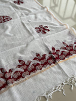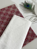 This elegant set features an Ajrakh-printed top crafted from high-quality 60 x 60 count cotton, ensuring comfort and breathability. It is paired with a beautifully designed Kota Doriya dupatta, adorned with intricate hand applique work, adding a touch of sophistication. The ensemble is completed with a matching bottom and a delicate zari border, making it a perfect choice for a graceful and stylish look.